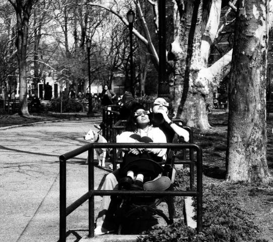 Further, people were outside talking to each other. Before the eclipse took hold I walked to a liquor store and an employee whom I’d never spoken to nor seen before offered me a momentary look through her eclipse goggles. She even gave me a nod and a “be safe!” as I left (to which I answered, of course, “no promises,” as someone who was definitely going to look at the eclipse without glasses.)
